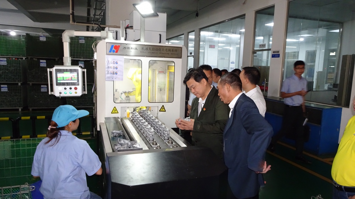 Accompanied by Huang Junquan, general manager of our company, Chen Huanlu, Secretary of the branch and other leaders, Liang Yaojun and his party visited the automation equipment on the production site of die casting workshop and CNC workshop of our company to learn more about the development, product production process and operation process of Guangdong Liyuan Technology Co., Ltd. Huang Junquan, general manager, especially introduced the new introduction and independent research and development In response to the development needs of scientific innovation in the new era, it has been fully recognized by Liang Yaojun and other leading comrades who visited the site.