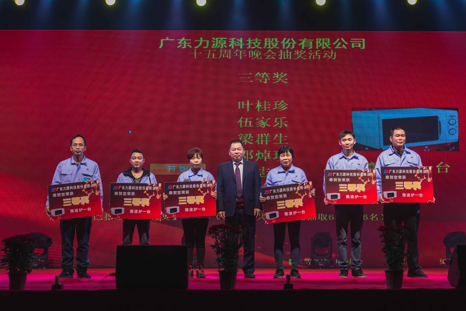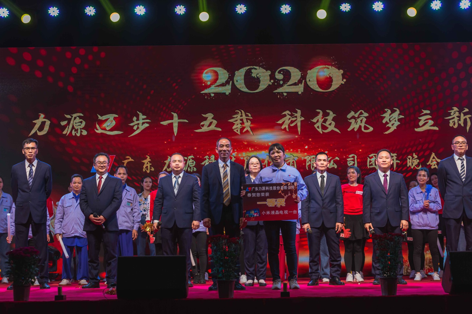在傍晚时分,嘉宾和员工都陆续进场了,他们在签名墙上留在自己的签名,纷纷合影留念,他们给公司带来了祝福,有朋至远方来,不亦乐乎!欢迎来自五湖四海的朋友,让我们欢聚一堂,共享这欢乐的盛宴。在主持人的开场中,广东力源科技十五周年晚会正式拉开帷幕。舞台布置的灯光五光十色,员工们精神抖擞,共同期待着当晚的节目表演。在表演开始之前,由我司黄总代表上台发言,总结了过去我司的发展情况,对公司的发展给与了肯定同时寄语新一年,希望能取得更远大的目标,在发表完演讲后黄总邀请公司管理层人员上台祝酒,与一众员工举杯共饮,吃一顿属于力源人的团圆“家宴”。